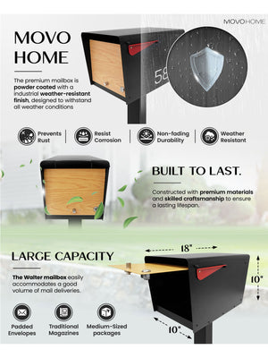 Easy Installation: The Charles mailbox is designed to perfectly integrate with our Movo Home post or bracket, ensuring a quick and effortless installation and enhancing the overall aesthetic of the mailbox.
